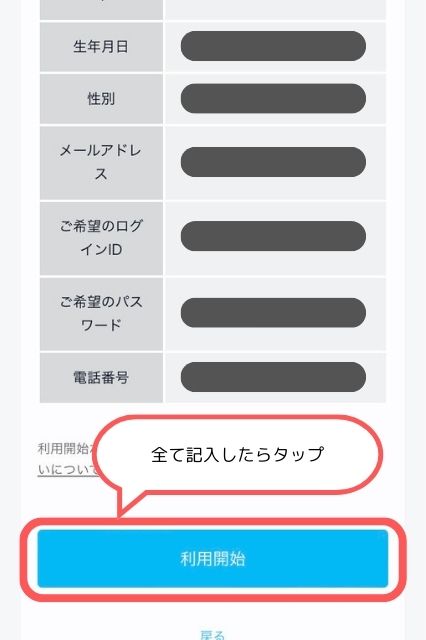 記入事項に誤りがなければタップして利用を開始しましょう。