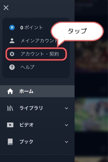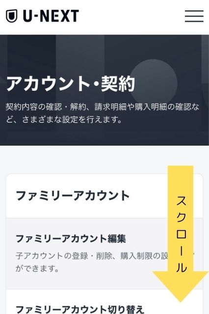 「アカウント・契約」ページに移動したら、下にスクロールする。