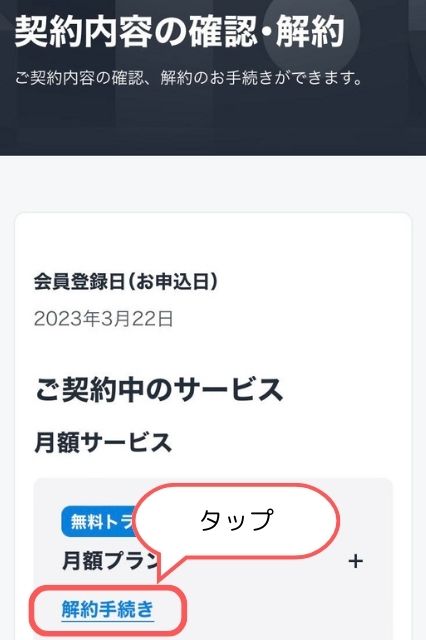 「契約内容の確認・解約」コマンドがでてくるのでタップ。